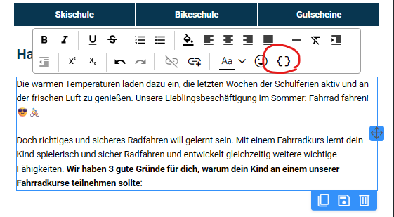 Wähle im Text-Editor die Funktion „Platzhaltervariable einfügen“