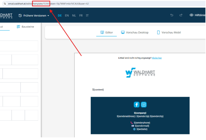 Nachdem du dein Template fertig bearbeitet und gespeichert hast, musst du die Template-ID ermitteln.